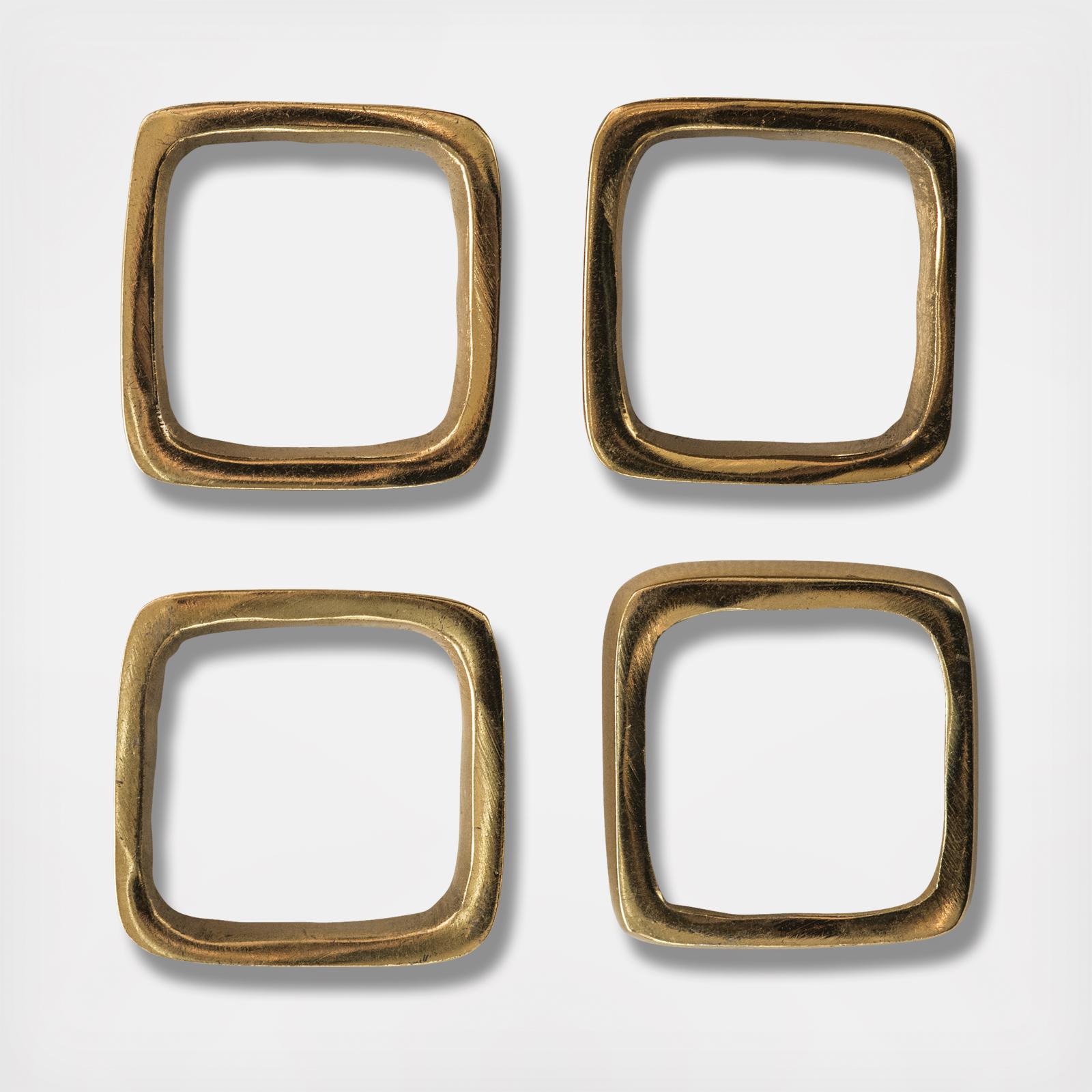 Napkin rings add style to any table setting. Add a touch of gold to the table decor with these unique square napkin holders. Gold is versatile and will complement any color scheme or napkin theme. Add a matching centerpiece by placing a small group of long stemmed botanicals inside one of the napkin rings instead of a napkin.