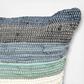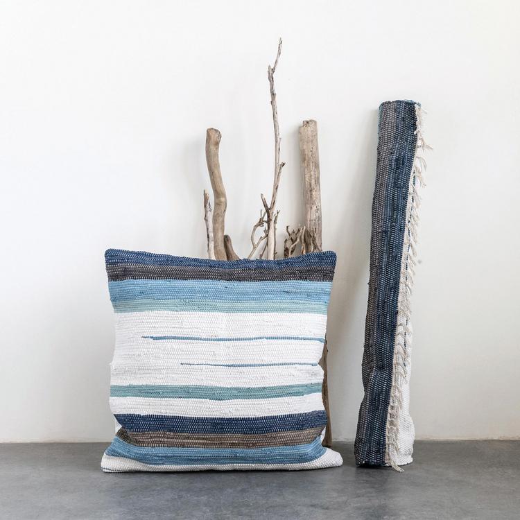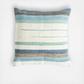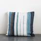Stripes of brown, blue and green bring soothing colors to the room decor. Place in front of a dark brown throw and place a solid mint green pillow to the side. Pair with a few navy blue pillar candles nearby for a completely cohesive space.