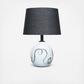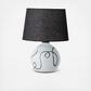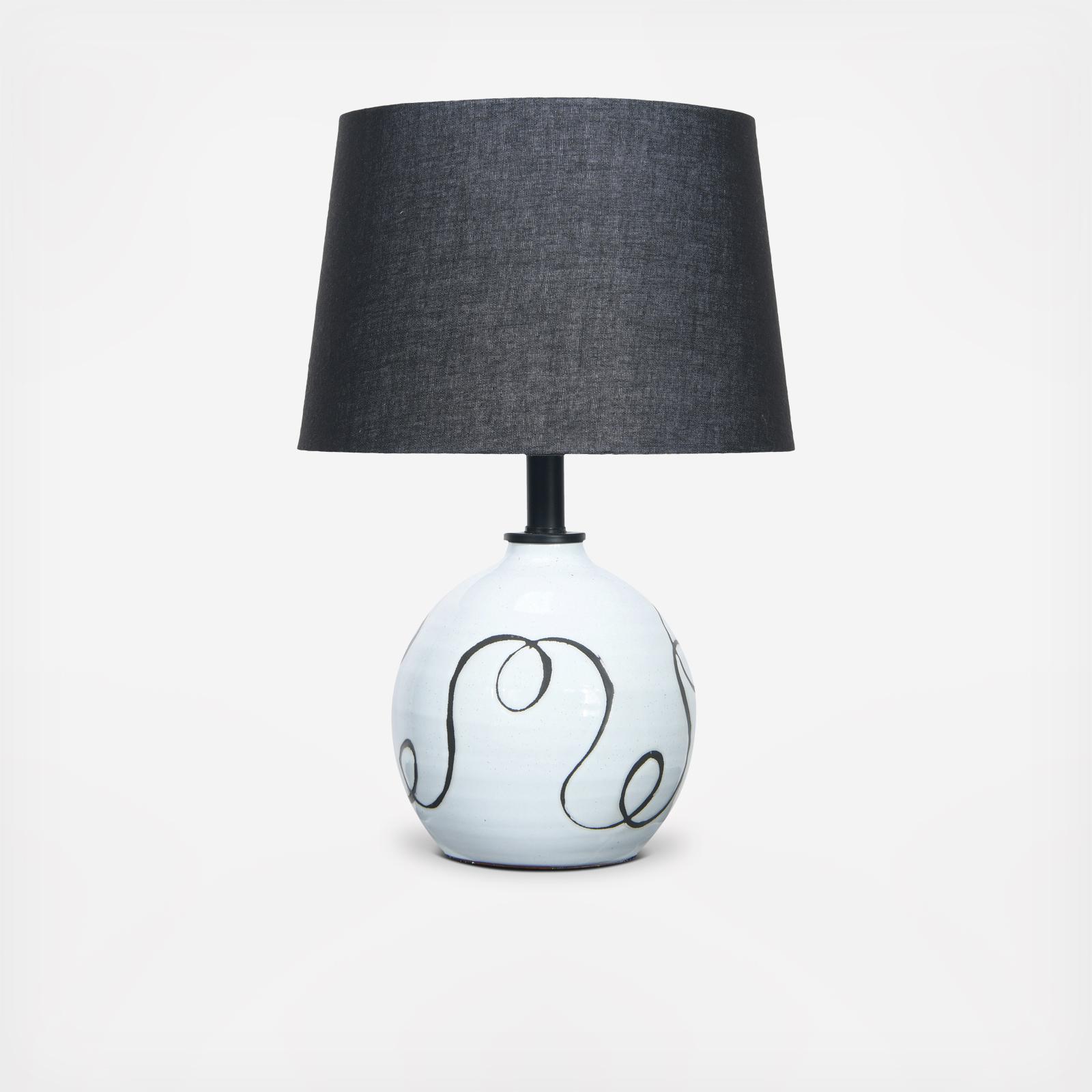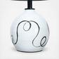 This adorable white and black table lamp radiates a lovely soft light. The terra-cotta adds a natural feel while the black abstract design adds a sense of glamor. An in-line switch is added for your convenience