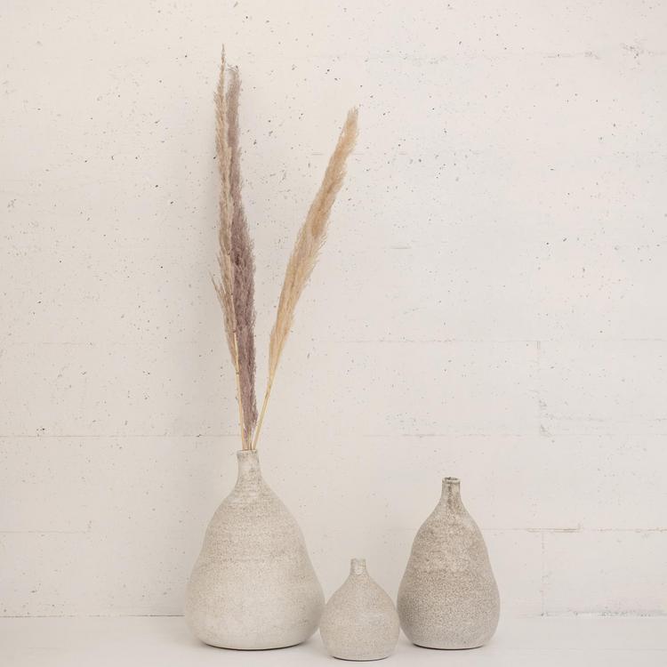 Add some style and personality to the home with this textured terra-cotta vase. This vase features a round terra-cotta body with a textured surface that creates a dimensional and interesting look. The terra-cotta is white in color with grey specks that give it a natural and organic look. The vase also has a narrow top that adds elegance and sophistication to the vase. The top has a small opening that can hold a single stem or a small bunch of flowers or plants, such as roses, lilies, orchids, or succulents. This vase does not have a drainage hole, so it is suitable for indoor use or for plants that do not require much water. Place a saucer under the vase to catch any excess water and prevent damage to the furniture. It is ideal for indoor use, as it can withstand different temperatures and humidity levels. This vase measures 9.75 inches in diameter and 14 inches in height. The opening is 1 inch in diameter. Whether placed on a shelf, a table, or a mantel, this vase will surely enhance the home decor with its elegance and simplicity.