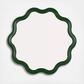 This Scalloped Wavy Wood Framed Wall Mirror is a unique piece that combines classic materials and artistic flair. The wood frame, featuring a playful wavy design, is painted in a classic green, making it a standout piece for any room. It fits seamlessly into decor themes ranging from the whimsy of cottage core to the eclectic charm of a boho space. With a diameter of 23.75 inches, it's sized just right for a variety of spaces. The mirror comes ready to hang with D-ring mechanisms that allow for easy installation, making it as practical as it is beautiful.
