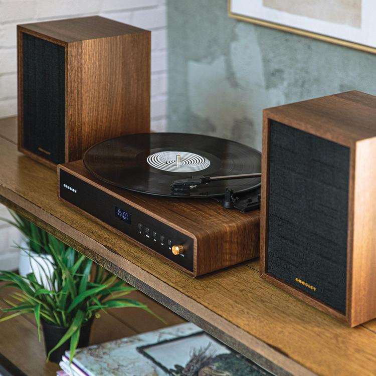 Prepare for a seamless transition into the realm of modern music players with the Alto Record Player with Speakers. Featuring a streamlined mid-century style, this turntable system is ready to go straight out of the box. Switch between three record speeds, enjoy built-in Bluetooth, and tune in to FM radio using the digital display. No matter your selection, the coordinating 100-watt bookshelf speakers ensure a powerful listening experience every single time.