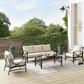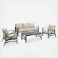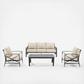 Entertain in classic style with the Kaplan 4-Piece Outdoor Sofa Set. Comprised of a sofa, coffee table, and two arm chairs, this set features sturdy steel construction with a transitional x-back design. Both the sofa and chairs have comfortable seat and back cushions covered with solution-dyed polyester, while the coffee table showcases a classic slatted look. Bring family and friends together for outdoor relaxation with the Kaplan 4-Piece Outdoor Sofa Set.