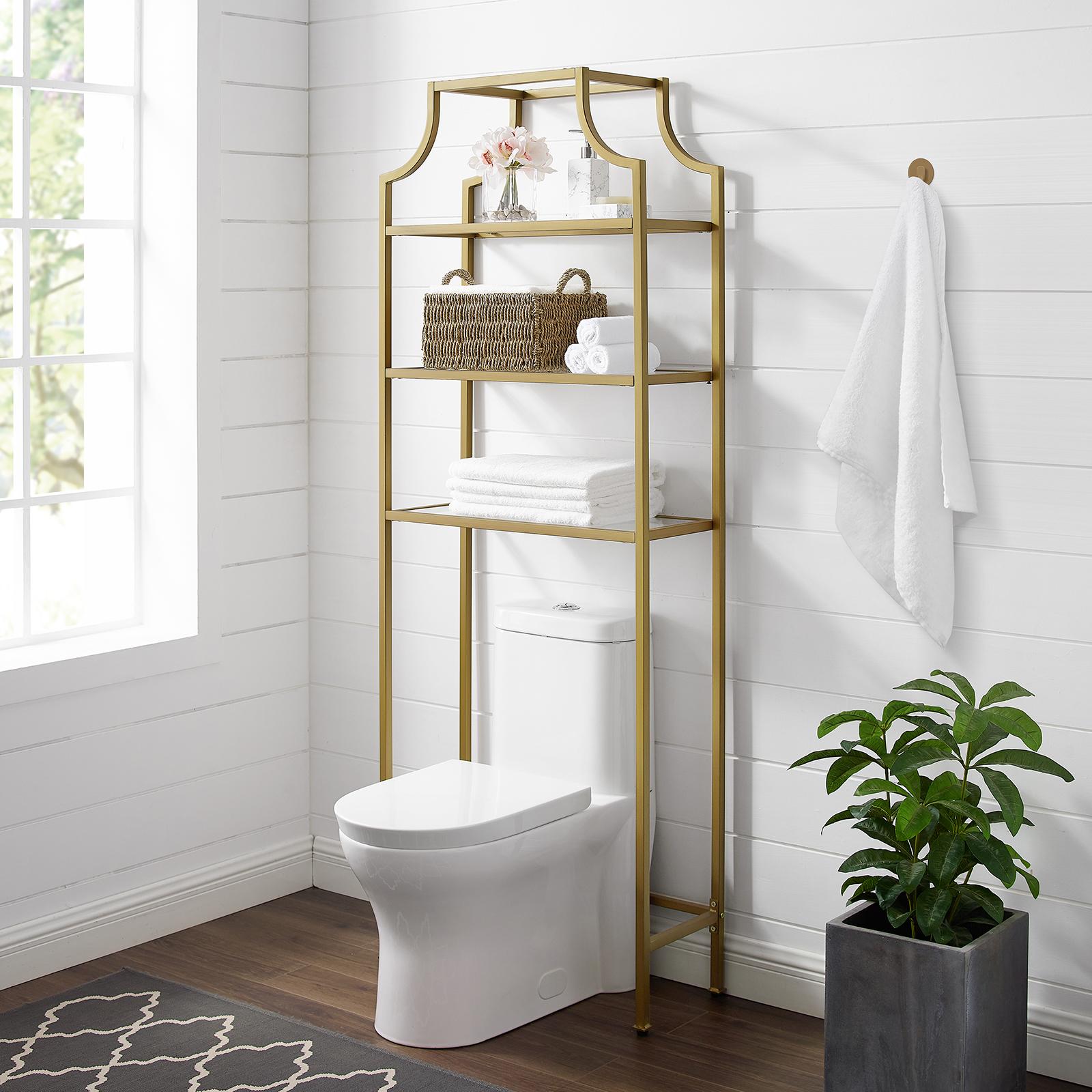 Stylish and modern, the Aimee Space Saver is an eye-catching and practical storage solution. Designed to fit over most standard toilets, this space saver features three tempered glass shelves perfect for storing all your bathroom essentials without overwhelming the space. The pagoda-styling and sleek steel frame add visual interest making this a great addition to any bathroom.
