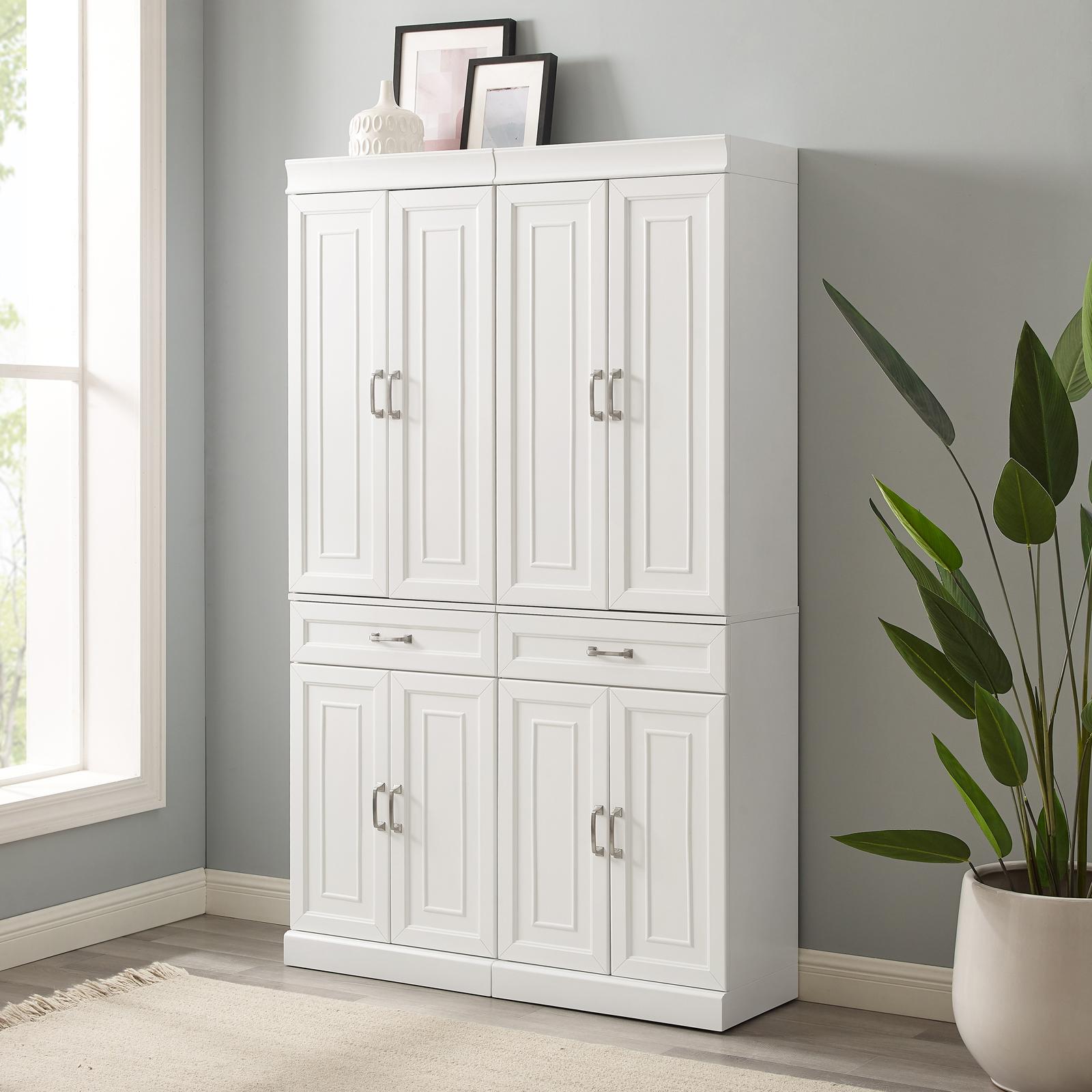Create the look of beautiful built-in storage with the Stanton 2-Piece Pantry Set. Each tall pantry features upper and lower cabinets with adjustable shelving, great for keeping everyday items out of sight. Both pantries also have a full-extension storage drawer for smaller items. Keep any room in your home organized with the Stanton 2-Piece Pantry Set.