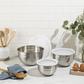 Save storage space and time with this unique set of mixing bowls. Durable enough for everyday use, these high-quality material bowls extend beyond prep work to keep food fresh longer. Blend batter, prepare sauces or dressings, and keep ingredients fresh in the refrigerator or freezer, all with handy lids that create an airtight seal.