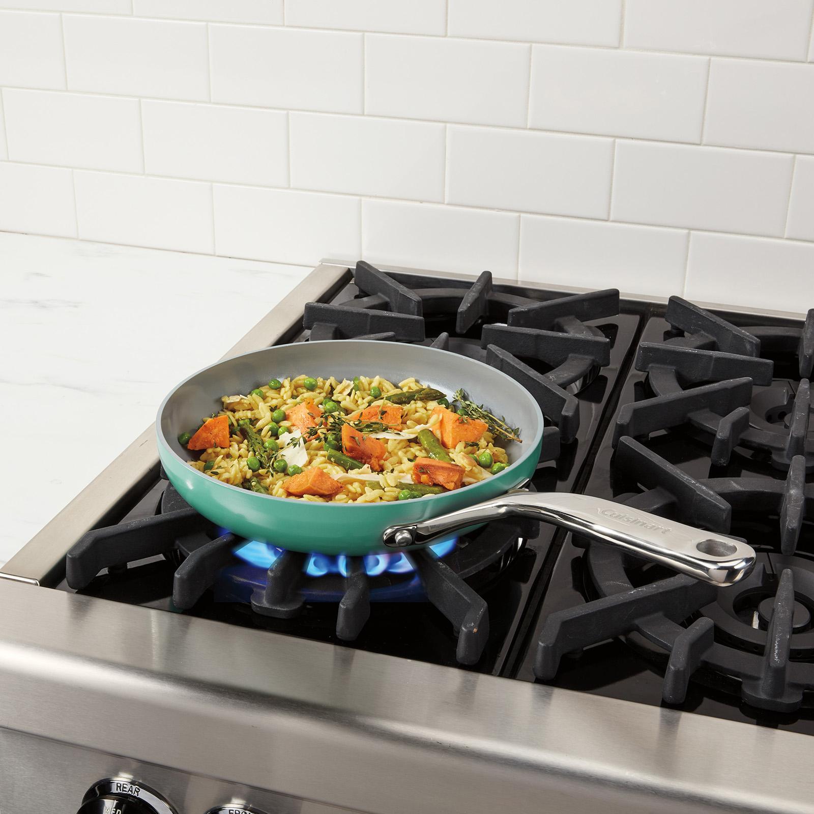 Introducing Cuisinart’s newest ceramic collection, Cuisinart® Culinary Collection, Combining flawless stunning colors with smooth ceramic grey-colored interiors and comfortable stainless handles. Each piece is contoured for style and the ergonomic handles are equipped with finger grips that make it easy when moving pieces from kitchen to table.