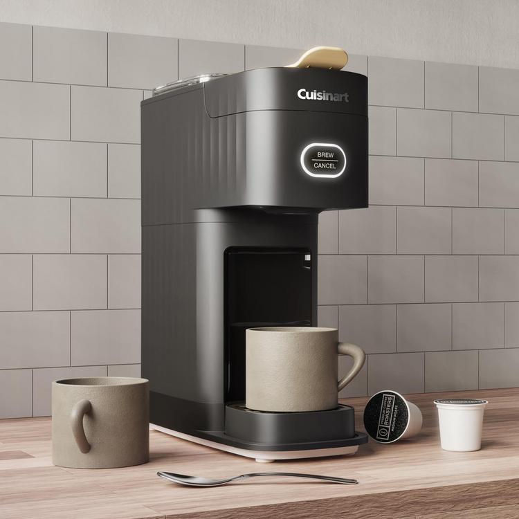 Cuisinart Soho Single Serve Coffeemaker, Begin your day with the Cuisinart Soho Single-Serve Coffeemaker. With a slim and sophisticated profile, this coffee maker is designed to save countertop space, making it ideal for smaller living spaces. Brew one rich cup at a time to take on the go or sit down for work or relaxation. The unit is pod compatible with a brew intensity guide for cup sizes in 6-, 8-, 10-, and 12-ounces. The 2-stage drip tray reduces splashes and is removable to accommodate a 20-ounce travel mug. With easy settings, LED lighting, and fast, flavorful brewing, the first cup of the day has never tasted so good. Morning rituals should be simple and minimal nothing more, nothing less. That's Cuisinart Soho.