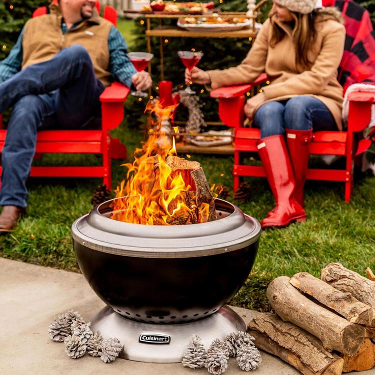 Enjoy the warmth without the smoke with the Cleanburn Fire Pit. With normal fire pits, there is always someone who gets stuck behind the cloud of smoke, making them quickly get up to find a new seat. Not anymore! Everyone can gather around happily and enjoy the warmth from this smokeless fire pit! Fueled by wood logs, this Cleanburn design increases the airflow and burning process, so you can have low smoke and high heat. The bottom vents pull oxygen in, feeding the flames from below while traveling between the double walls, causing the air to heat up. That hot air then travels through holes at the top of the unit, burning off any ash debris or smoke that the flames create, making this a smokeless fire pit. Clean up is a breeze with the base ashtray, simply remove the fire bowl and lift the base to empty ashes. Easily move the fire pit with the integrated handle, conveniently located in the lock-in base. Gather your friends around the Clearnburn Fire Pit and enjoy the warmth while making new memories.