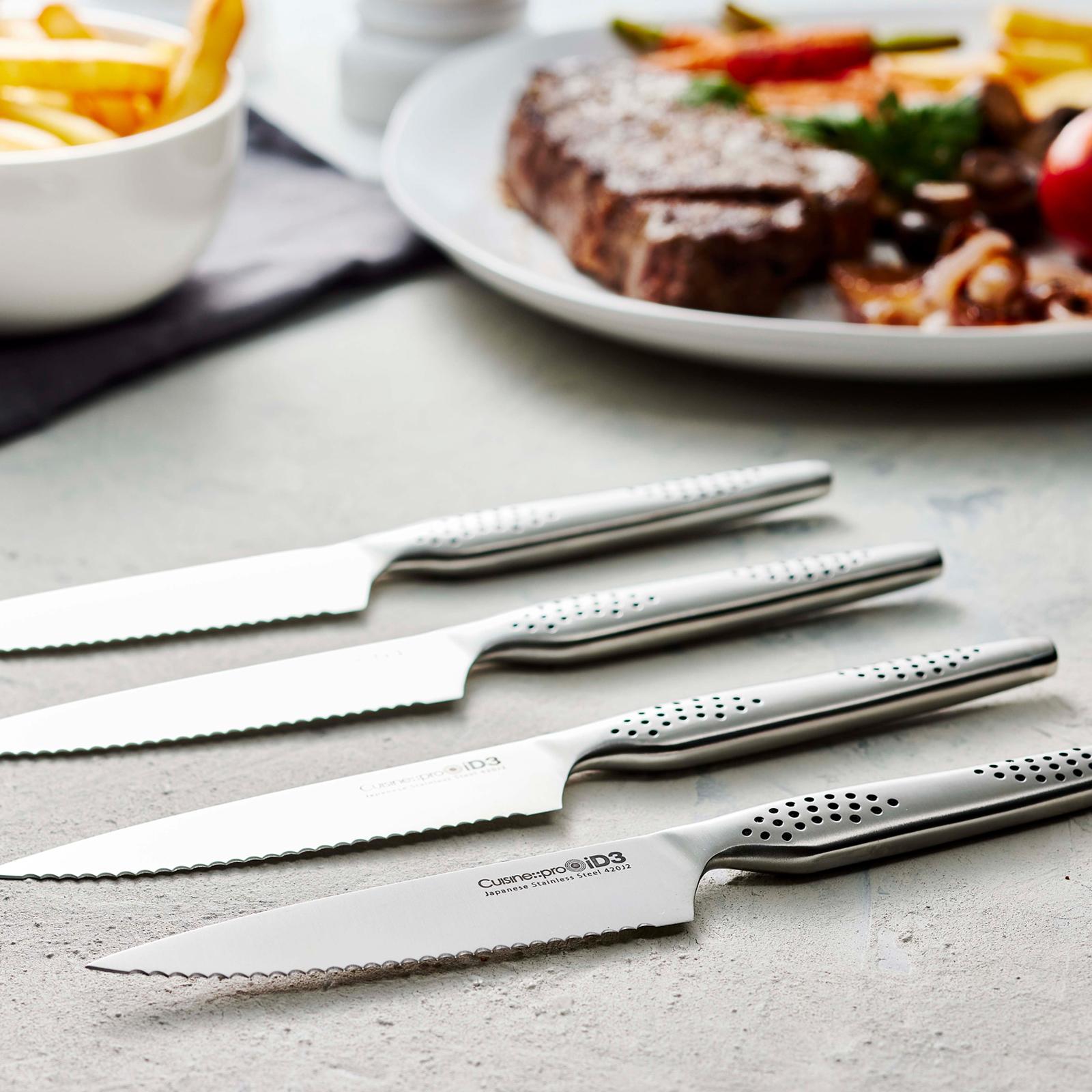 The Steak Knife, Set of 3 is perfect use when enjoying your favorite steak at home. With the finest quality material and sharp serrated edges, no other knife will glide through meat like the steak knife. The handles are sturdy and shaped ergonomically, designed so it is comfortable to use and provides good grip when cutting through your steak. The steak knives come in a set of 4, so it is perfect when sharing a meal with family and friends.