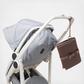 Meet the baby changing kit that wilchange everything. Waterproof. Washable. Comfortable. A great add-on to both the Indi and Wade, Joey is gentle enough for tiny bums but roomy enough for spare diapers, creams, and wipes. This portable baby changing pad clips on to any stroller and is just what every neparent needs to keep tiny bums comfy and happy. The lining and dust bag are almade from Repreve® recycled polyester - a durable, versatile materiathat turns recycled bottles into bags. This process involves less water, energy, and greenhouse gases than it does to create virgin fibers. A high-tech fabric that is water resistant and hand washable. It’s insulating and shock-absorbent thanks to the materiamakeup. A modern materiafor modern needs, the durability and versatility are endless.