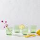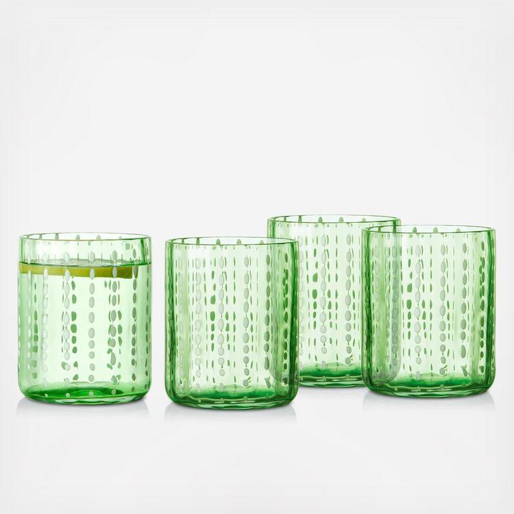 The Darbie Angell Brand not only creates beautiful tableware for your home, but empowers and employs women throughout the world, aiming to impact lives one table setting at a time. Entertain in style with this Set of 4 Dappled Clouds Double Old-Fashioned Glasses. These elegant drinkware pieces feature vibrant colors and delicate dotted details that bring a lively look to tables, making them perfect for both everyday dinners and special occasions. They are made of durable soda glass with a tint for long-lasting beauty.