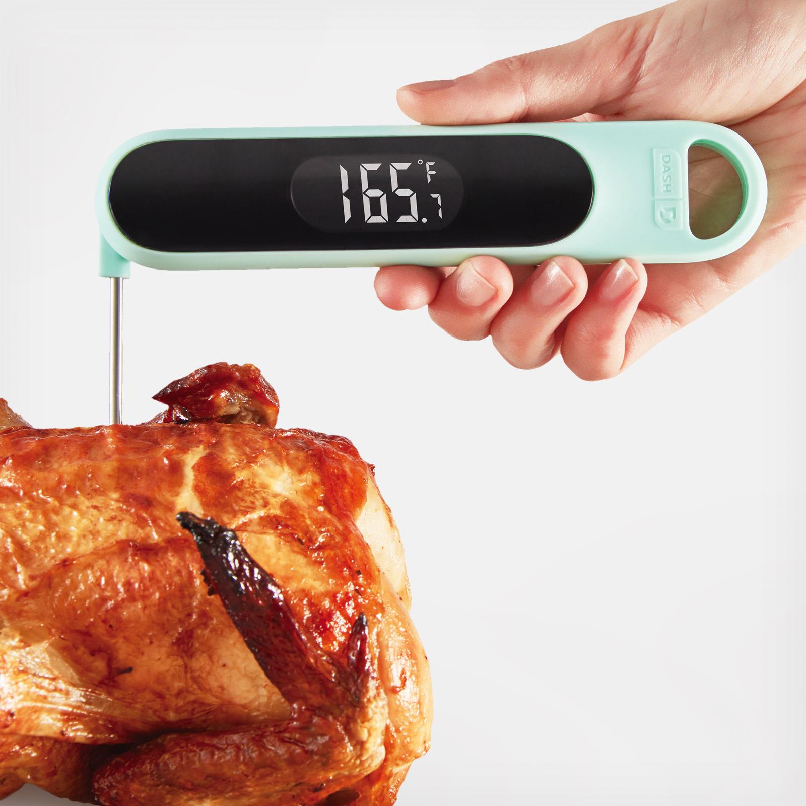 Elevate your cooking with the Precision Quick-Read Thermometer. Check meats and entrées for the perfect doneness while cooking, or read the temperature of chilled desserts as they cool. The Quick-Read Thermometer’s probe provides an accurate reading within 3 seconds, whether hot or cool, and you can easily read in celsius or fahrenheit on the LCD display. When you are done, the thermometer is water resistant and easy to clean.