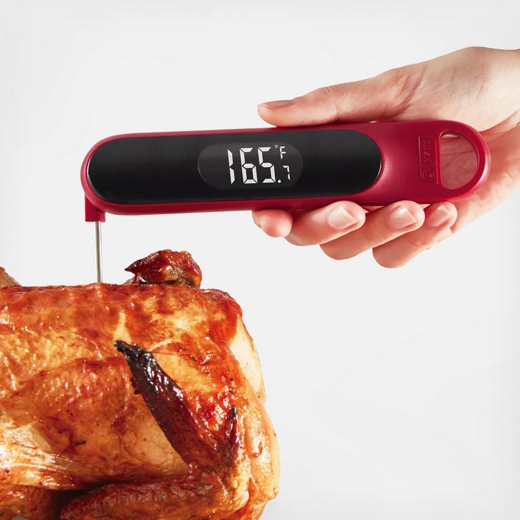 Elevate your cooking with the Precision Quick-Read Thermometer. Check meats and entrées for the perfect doneness while cooking, or read the temperature of chilled desserts as they cool. The Quick-Read Thermometer’s probe provides an accurate reading within 3 seconds, whether hot or cool, and you can easily read in celsius or fahrenheit on the LCD display. When you are done, the thermometer is water resistant and easy to clean.