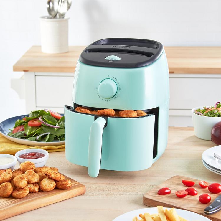 Cook crispy fried food in a dash with the Tasti-Crisp Air Fryer! AirCrisp® technology fries with hot air instead of oil, for delicious fried food with up to 75% less fat than a traditional deep fryer. This convenient countertop air fryer is sized for any kitchen, making it easier to store while still providing ample 2.6 qt capacity. The redesigned Crisper Basket allows for greater surface area inside the Air Fryer, so food gets more crisp, faster.