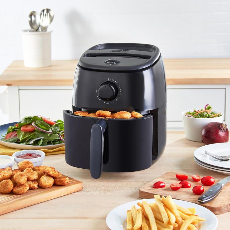 Cook crispy fried food in a dash with the Tasti-Crisp Air Fryer! AirCrisp® technology fries with hot air instead of oil, for delicious fried food with up to 75% less fat than a traditional deep fryer. This convenient countertop air fryer is sized for any kitchen, making it easier to store while still providing ample 2.6 qt capacity. The redesigned Crisper Basket allows for greater surface area inside the Air Fryer, so food gets more crisp, faster.