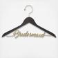 This unique dress hanger boasts a trendy-chic style with chalkboard wood, gold hanger and gold metal text. This functional decoration keeps your dress in place while you prepare for this special day, and the chalkboard finish can be personalized with the bridesmaid's name, wedding date or little message from the bride. A lovely keepsake, this dress hanger makes a great bridesmaid gift from the bride-to-be!