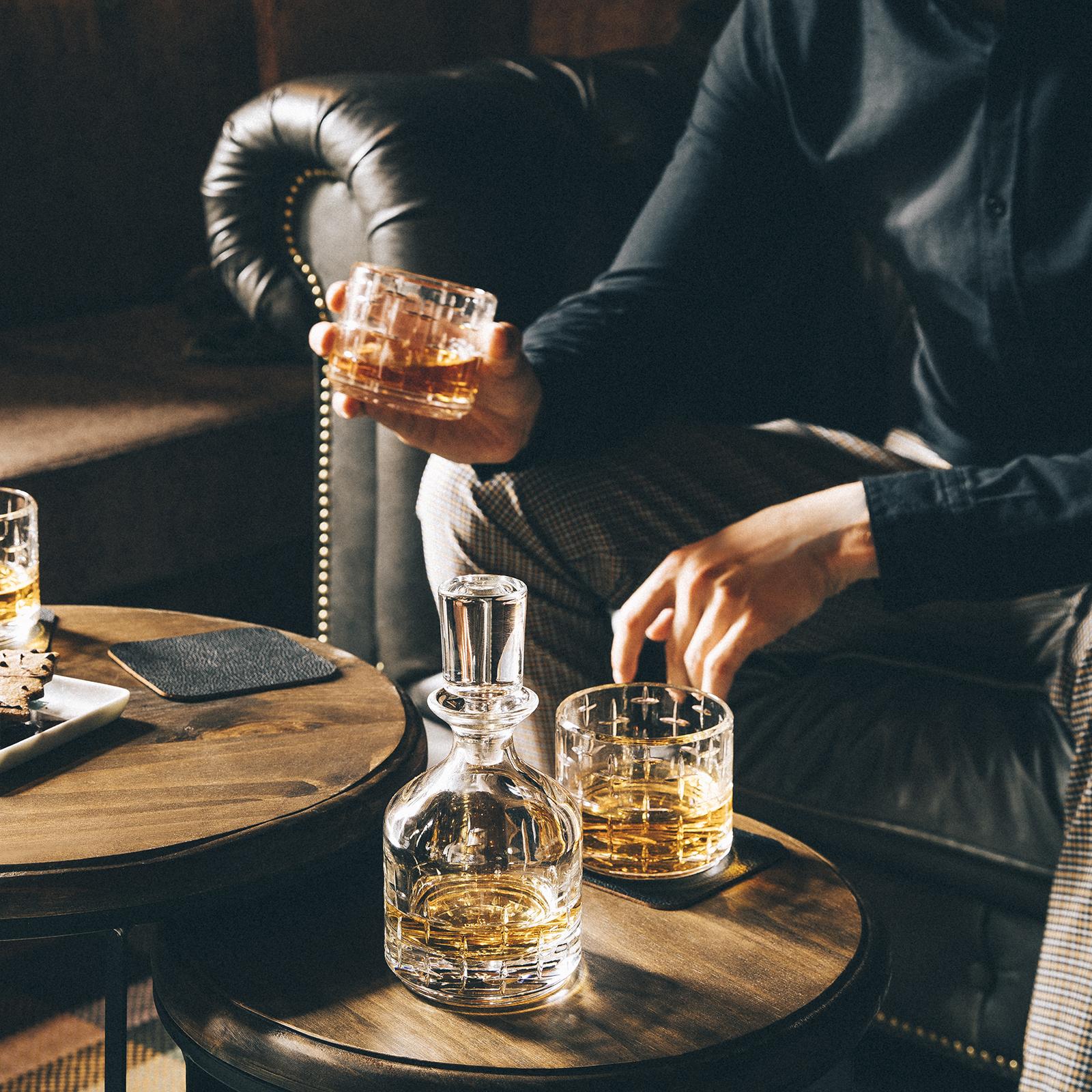Degrenne conveys the idea of an art of living in which every moment is to be savoured. The newport twist collection completes the newport collection. This collection is built around the enjoyment of pure spirits, either on ice or in cocktails. Newport twist offers a fresh take on glassware dedicated to spirits by creating a set of two stackable glasses and a decanter. The generously sized and geometric products are made from crystal to bring understated elegance to this ritual while enhancing the colour of the spirits.