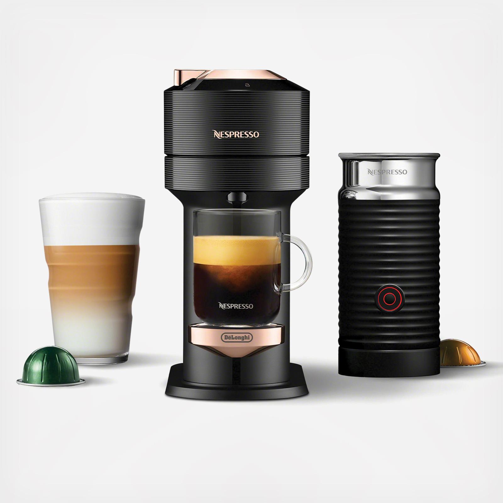 Nespresso introduces the VERTUO NEXT PREMIUM, the latest VERTUO Nespresso coffee maker with an all-new design and colors for the ultimate brewing experience. In addition to its original espressos, NESPRESSO VERTUO NEXT produces an extraordinary cup of coffee with a smooth layer of crema is the signature of truly great cup of coffee. The VERTUO coffee and espresso coffee machine conveniently makes 5, 8, 14 oz Coffee and 1.35, 2.7oz Espresso. Nespresso brings together the know-how of all its coffee experts, who have carefully chosen the origin and roasting of each coffee blend and created a brewing system using Centrifusion technology, a patented extraction technology developed by Nespresso. Just insert a Vertuo capsule and close the lever — when activated, the capsule spins up to 7,000 rotations per minute, blending ground coffee with water and producing the perfect crema to enjoy quality coffee in larger cup sizes. The machine delivers the optimal in-cup results for each blend using capsule-specific brewing with barcode reading. Bundled with Nespresso's Nespresso Aeroccino3 provides smooth hot or cold milk froth for your coffee recipes with one touch. It froths all types of milk in a few seconds, without noise or vibration. Each machine includes a complimentary welcome set with a range of Nespresso Vertuo capsules with unique aroma profiles. Order your Nespresso capsules, receive personalized advice, and obtain technical support or repair for your machine through the Nespresso Club via mobile app, online at Nespresso.com, by telephone or in one of our Boutiques. This coffee machine is compatible with Nespresso pods.