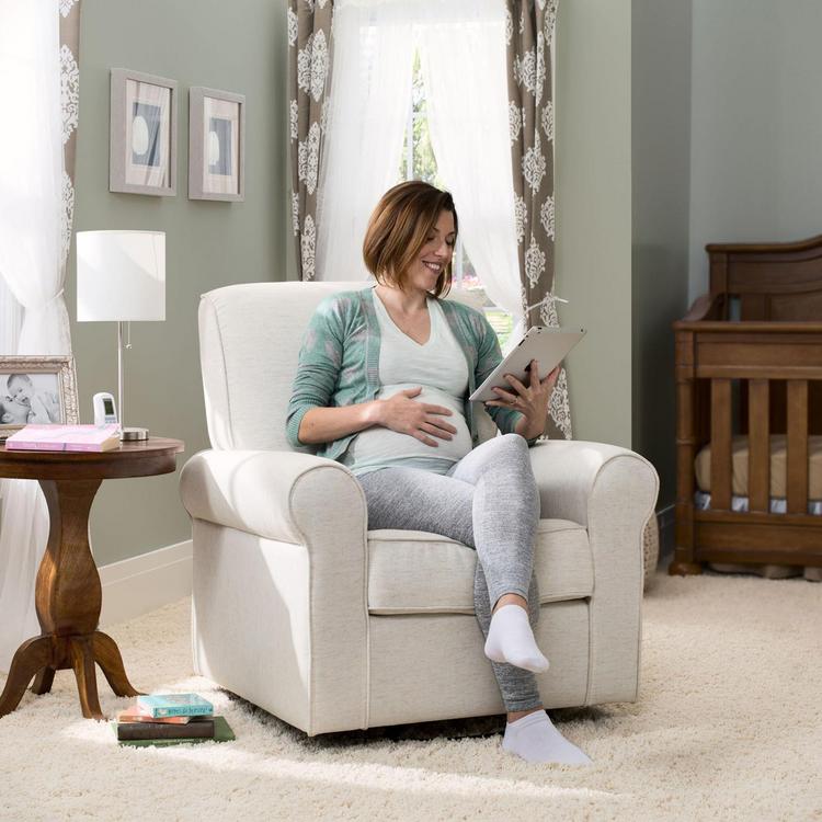 Perfectly plush, the Avery Upholstered Glider from Delta Children features a simple, timeless silhouette, a supportive back, padded armrests and a durable wood frame. Finished in a durable fabric, this gorgeous glider is built with a hidden metal gliding mechanism for smooth and long-lasting comfort that instantly makes any room in the house relaxing-not just the nursery.