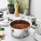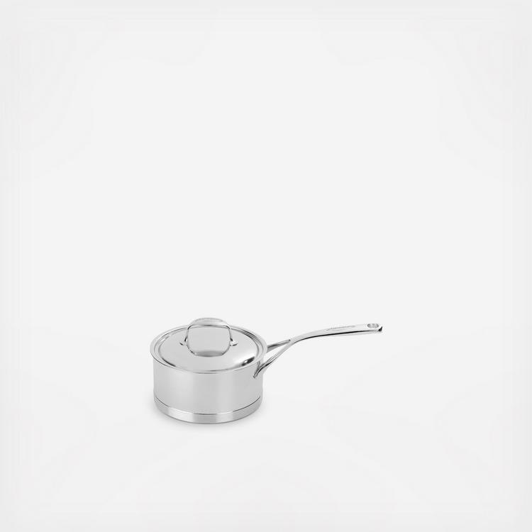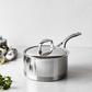 Demeyere Atlantis Saucepan with Lid appeals to professional and home chefs for its exceptional performance and elegant design. Provides unparalleled frying, perfect browning, and guarantees exceptional heat distribution and retention. The straight sided pans boast layers base, inductoseal, whose copper disk ensures impressive heat conduction. Proprietary technology ensures the base stays flat even when heated. The patented silvinox surface treatment maintains the beautiful silvery appearance. Enjoy easy maneuverability with the stay-cool, welded handles while the rolled rims encourage dripless pouring.