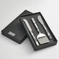 Inlaid pieces of mother of pearl on both sides of the handle of these solid stainless steel tools. The shading runs in a range from gray, to gray blue and sometimes a hint of blue-green. Thanks to mother nature’s variation, each piece will have its own special character.