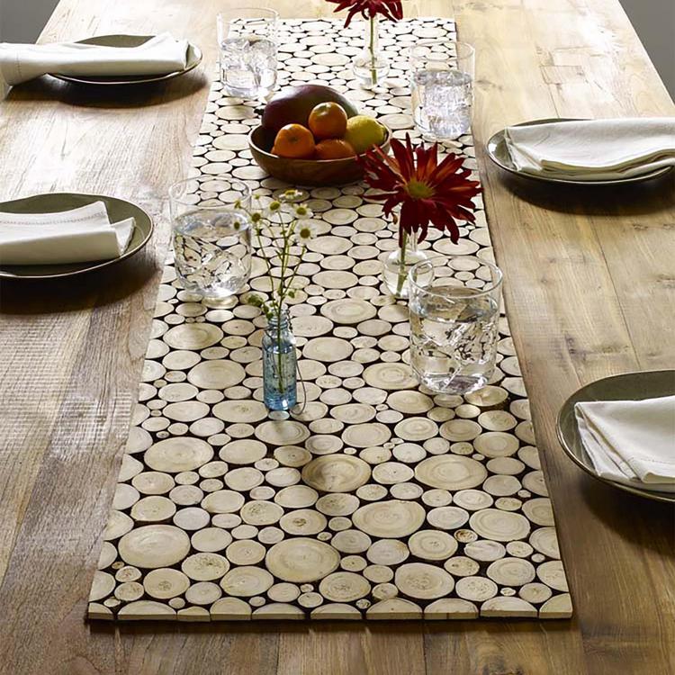 We assemble our Branch collection by slicing cross sections of tree branches that would otherwise be burned, then sizing the individual slices to form a kind of natural parquet pattern.