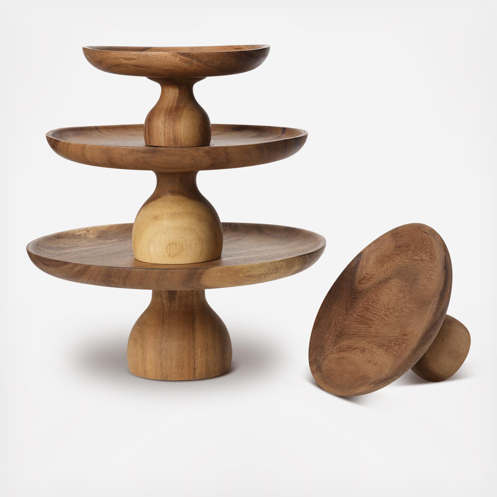 Skilled artisans spin-carve these pieces from sustainably harvested suar wood. Ideal for offering hors d’ouevres at your next party or displaying a festive collection of candles, each Brindisi pedestal is coated with a thin layer of beeswax to create a satin-soft food-safe finish. Due to natural variation, each piece is uniquely yours. Stack all three sizes for a more dramatic presentation. Wipe clean with a damp cloth.
