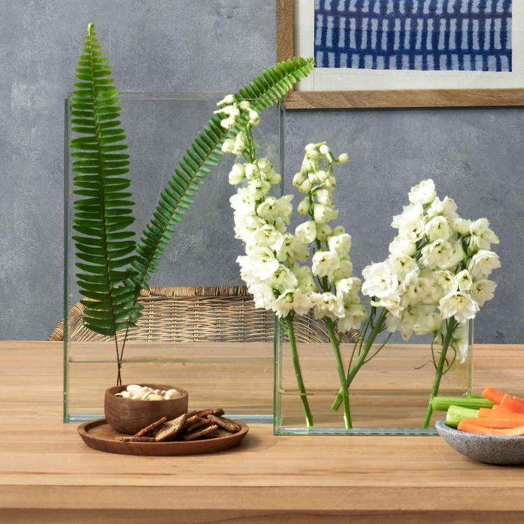 Thick sheets of perfect, clear glass are expertly joined to make our vases of remarkable sophistication and elegance. The virtually seamless joints require water depths to be limited to 10 inches, for the purpose of managing water weight.
