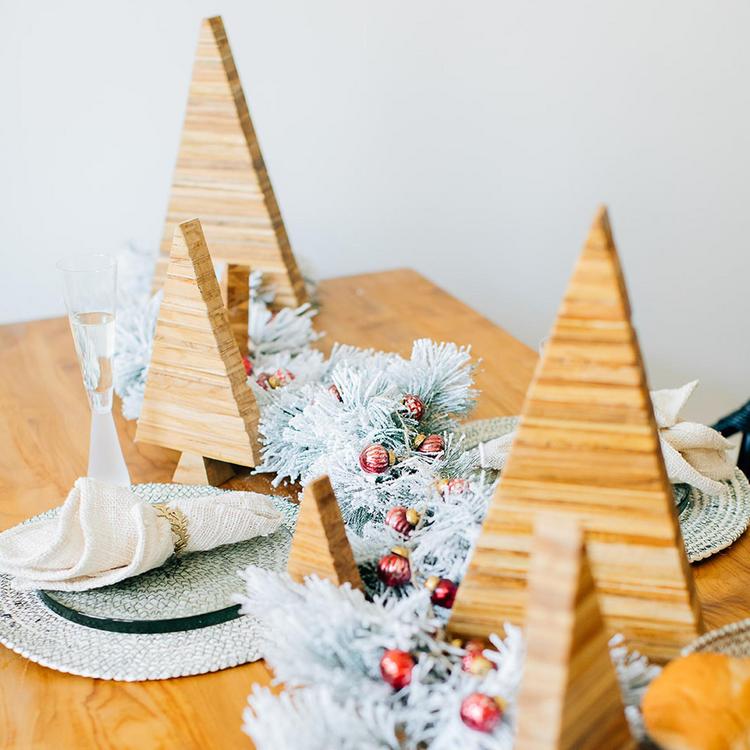 Recycling becomes part of the spirit of Christmas with our Woodstock™ trees. Javanese craftsmen collect scraps of wood from their workshop then fit them together like a jigsaw puzzle to form these familiar seasonal icons. While the sizes are standard expect each tree to have its own unique layering of slightly different shades of golden teak.