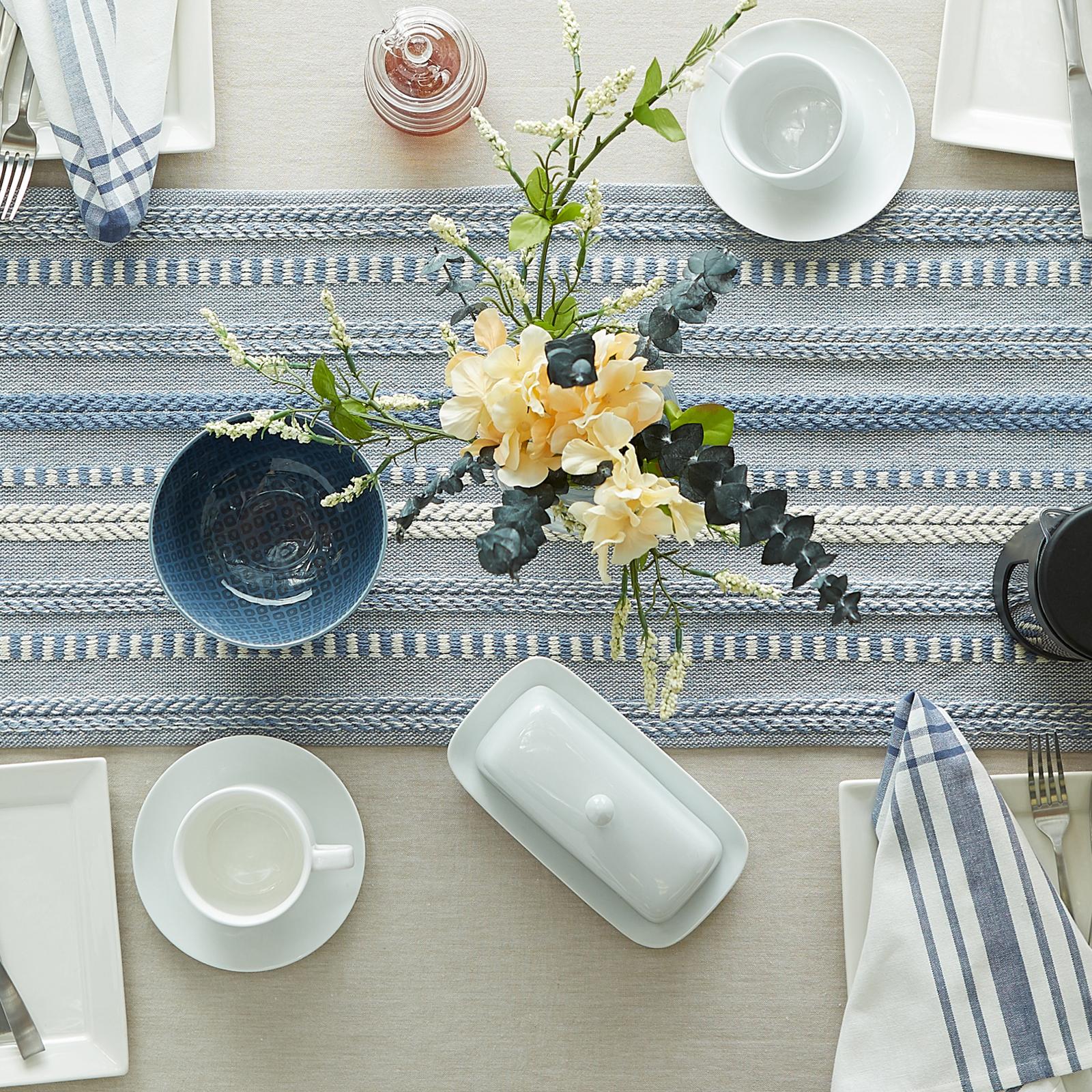 These Braided Cotton Table Runners are a great way to style your table for dinner parties, weddings, or other elegant events on a budget. The modern, chic look is sure to catch the eyes of your guests. Adds bohemian flair and dimension to the table. They are also great for entry way tables, coffee tables, dining tables, or other surfaces of your home. Offers delightful home products including matching cloth napkins, napkin rings, placemats and tablecloths.