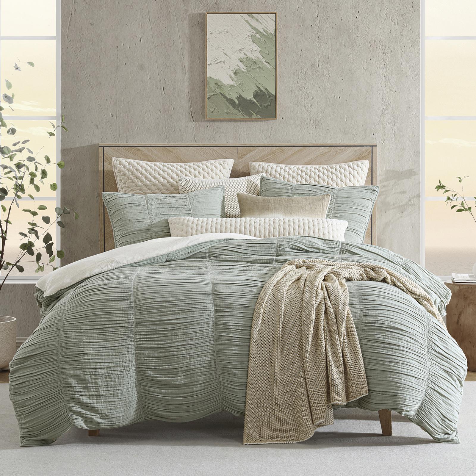 Elevate your lounging experience with the DKNY PURE Ruched Gauze Bedding Set. This bedding feels soft and breathable from cotton, making it perfect for laid-back comfort. The ruched gauze design adds texture and a relaxed, lived-in look, while the crisp white cotton sheeting on the reverse provides a fresh contrast. End or spend your day in a bedding set that wraps you in casual luxury while lending effortless style.