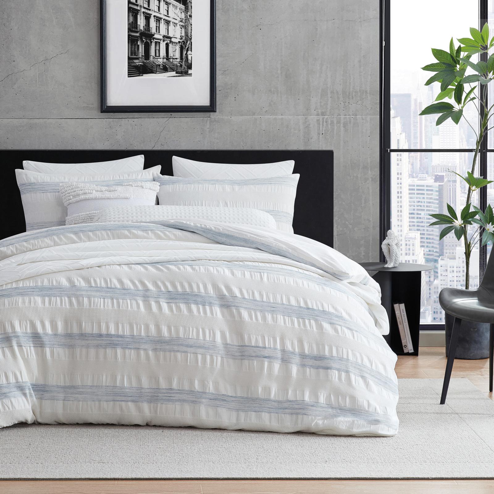 Relaxed yet refined, the DKNY Waffle Stripe Jacquard Bedding Collection wraps you in effortless comfort. Crafted from breathable cotton, it’s designed for those who love a soft, airy feel with a touch of modern style. The waffle texture and washed horizontal stripes create a modern, lived-in vibe-perfect for sinking into at the end of the day.