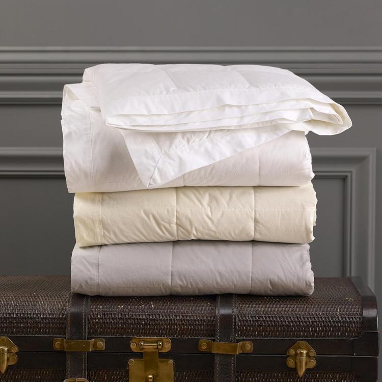 This lightweight blanket is filled with premium white Down to keep you warm and cozy year round. It's great to keep by your bed for an extra layer of warmth at night or in your living room for evening snuggles.