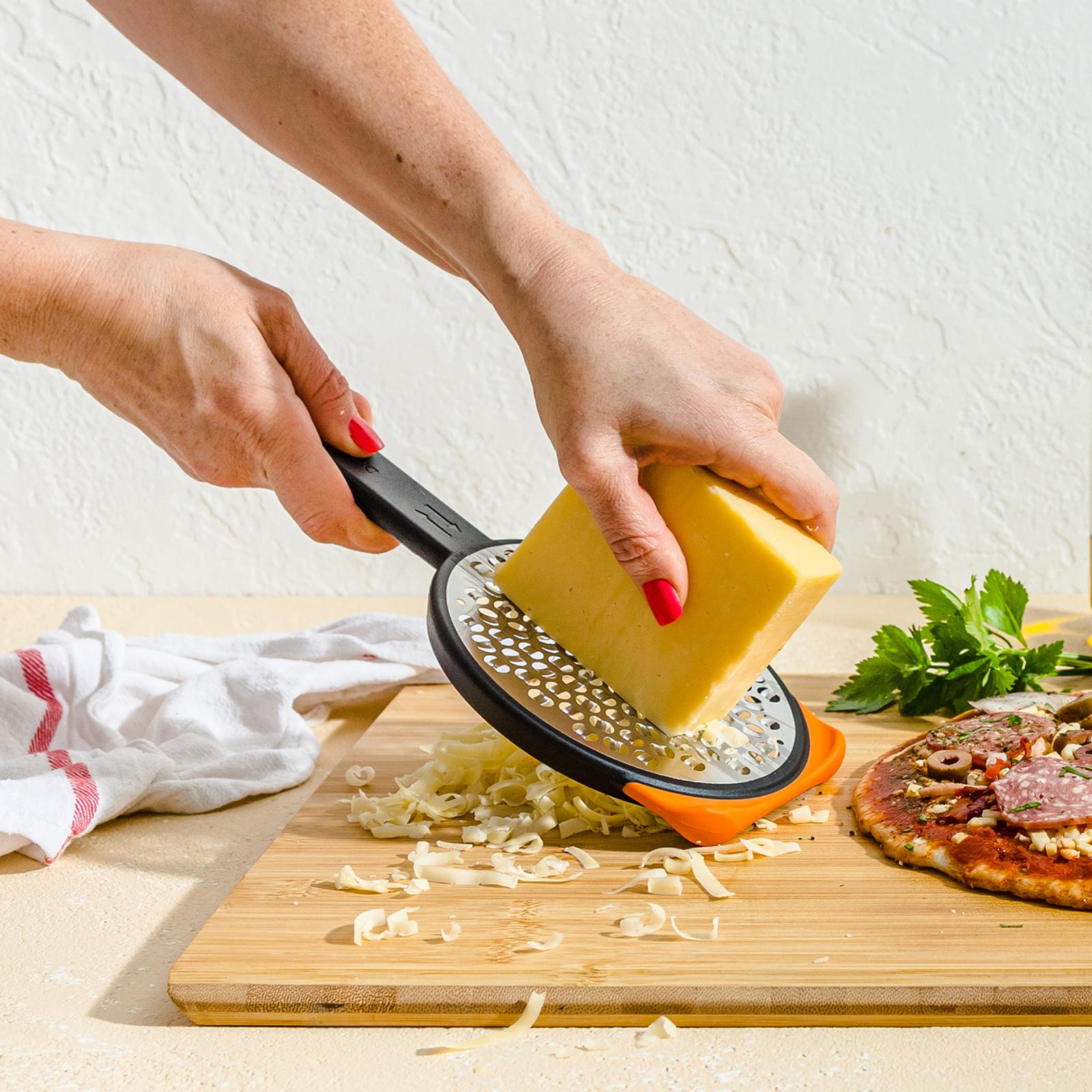 Dreamfarm Ograte is a two-sided speed grater that continuously works in a circular motion on one side, and an up and down motion on the other.