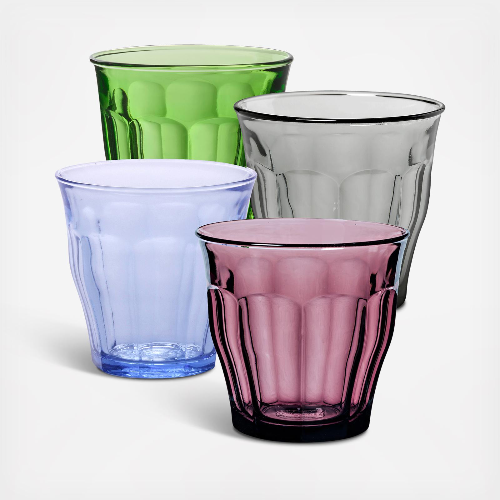 Set of 4 glasses known as the "original French tumblers", the tempered Le Picardie® glasses are functional and stylish - they feel extremely comfortable in your hand. Named after the Picardie province in northern France, this region is the heartland of French gothic cathedrals. Le Picardie® tempered glasses are suitable for hot or cold drinks and conveniently stackable. Extremely durable and the perfect weight. Our colors are not sprayed on - the color is in the glass so you will have no fading, dulling or peeling of the color.