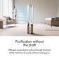 Dyson Purifier Cool PC2 De-NOx delivers whole-room purification and powerful cooling. Advanced air purification captures more NO₂. Removes odors and gases, and continuously destroys formaldehyde. The fully sealed, 3-stage filter system captures of particles as small as 0.3 microns. The whole purifier, not just the filtration system, is fully sealed to HEPA H13 grade. Air Multiplier technology projects over 76 gallons per second of smooth, yet powerful airflow. Connects to the MyDyson app to control and monitor air quality from anywhere, or hands-free with compatible voice services.