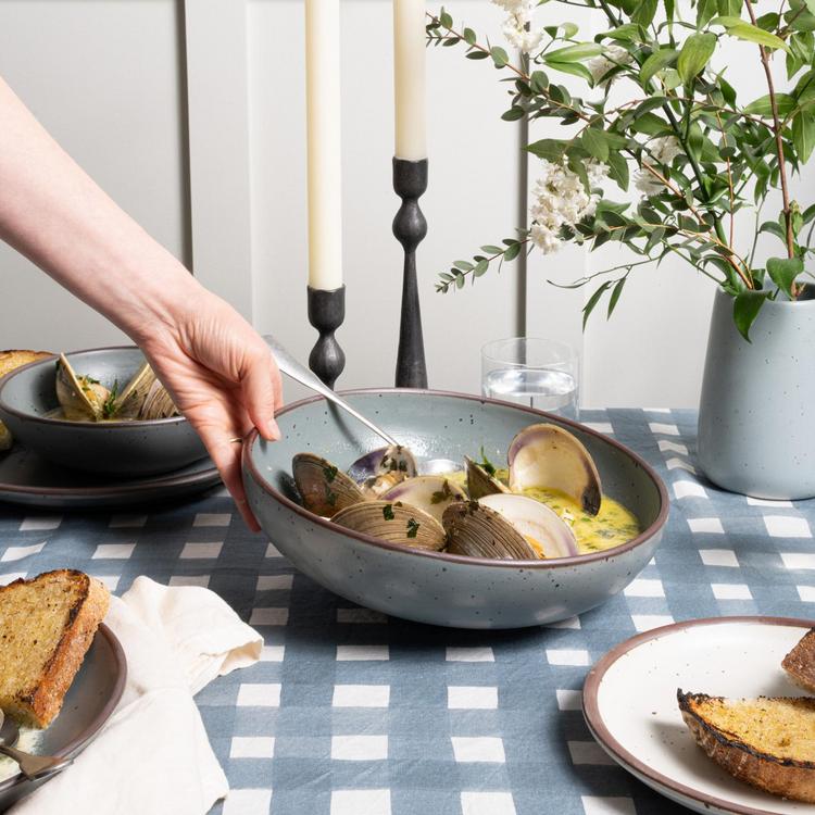 Busy holding fruit on the counter when it's not joining for dinner. The Weeknight Serving Bowl is great for two people plating their own main dishes or for sides for the buffet. Fill it with fruit or candles and you have got a right good centerpiece, too.