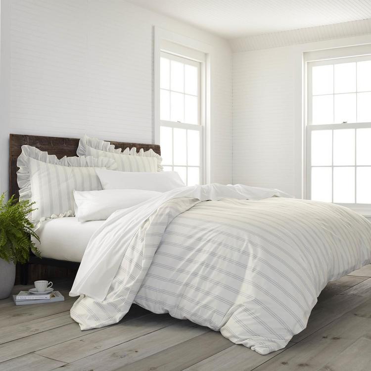 The EcoPure™ Brooke Comforter Set is the perfect addition for those who want a touch of style and sustainability for their bedroom retreat. The comforter is made using 100% GOTS certified organic cotton, and non-harmful, Oeko-Tex approved dyes & finishes. Garment washed for added softness, the Brooke comforter is decorated with a serene light gray stripe. This comforter is filled with EcoPure™ 95% recycled and 5% virgin polyester material.