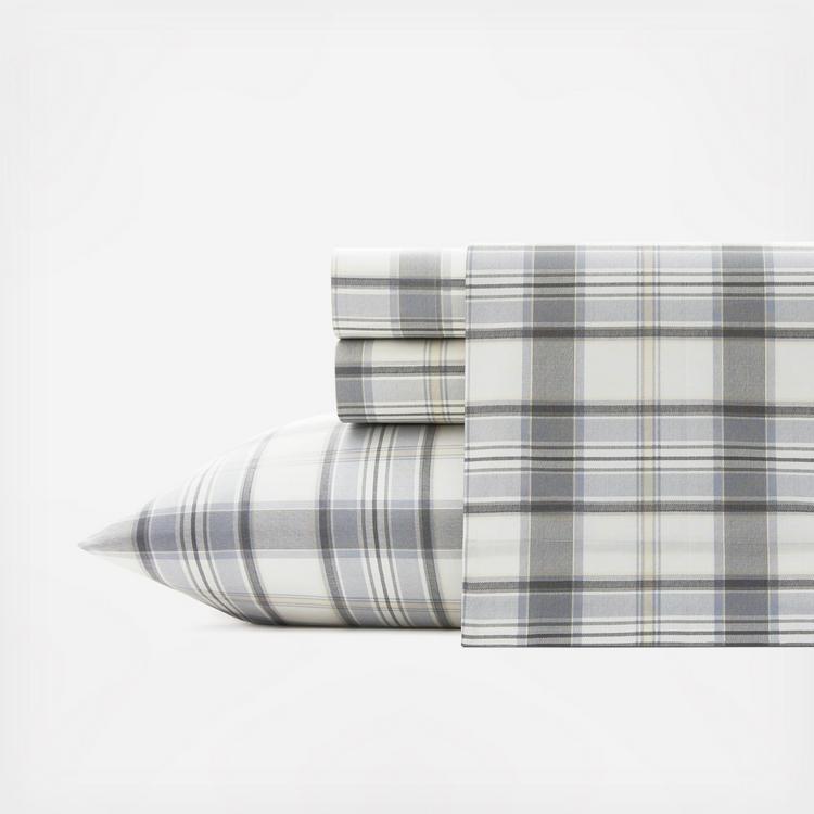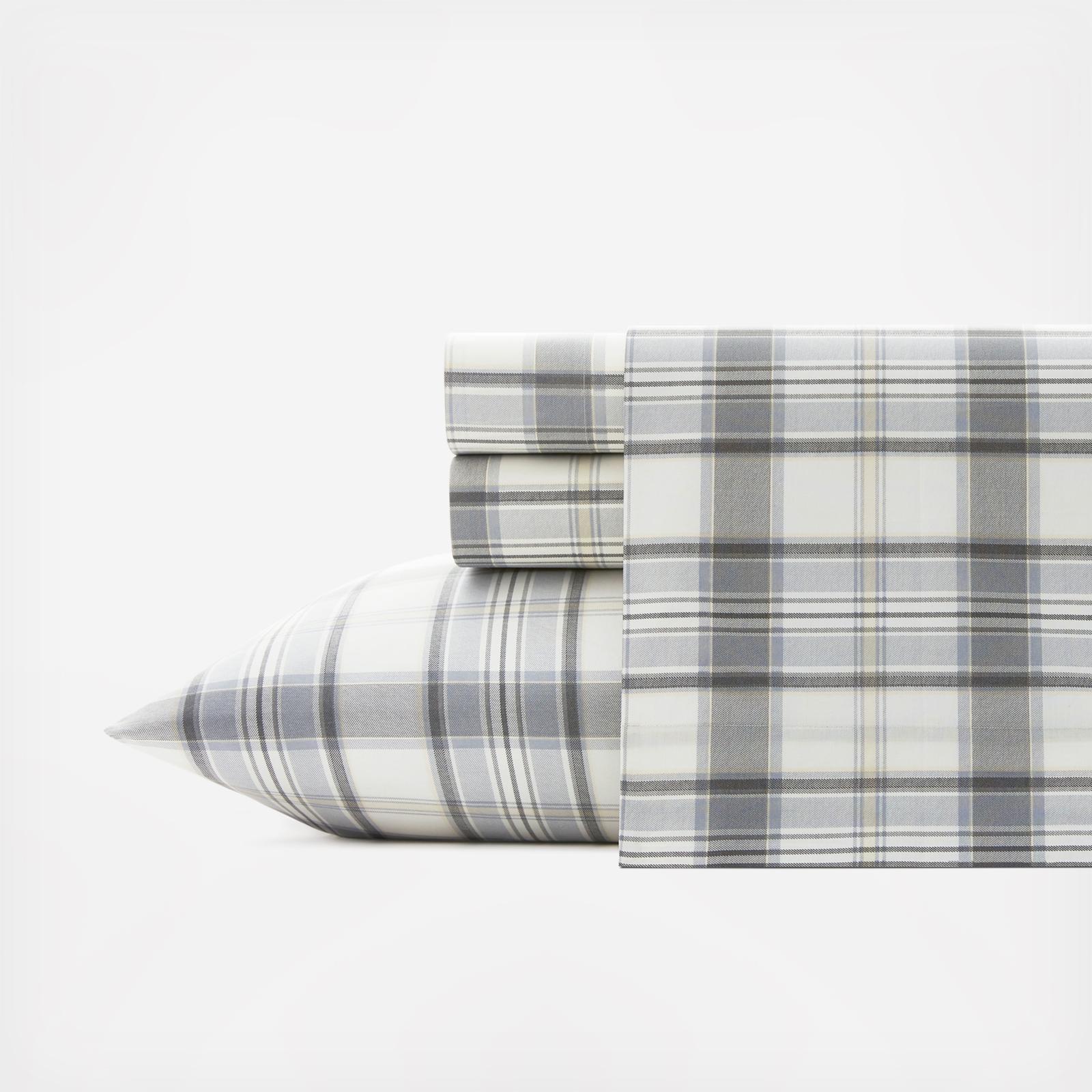 Plaids are a classic favorite for both apparel and home. Always in style, plaids have a casual charm that fits in easily anywhere and take on different personalities depending on the color palette used. This 200 thread count cotton percale sheet set has a decidedly modern appeal in a palette of neutral grays and ivory with a pale yellow accent. Made of 100% cotton with a percale weave, these sheets are available for a twin, full, queen or king size bed. The fitted sheet is fully elasticized to prevent slipping from your mattress and ensure a perfect fit.
