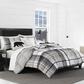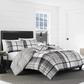 Soft and silky brushed micro suede lends extra warmth and comfort to this handsome plaid comforter set. The large scale of the main plaid creates a fresh, modern attitude for this classic design and the sophisticated neutral palette of black, beige and white with a color accent of coppery tan will complement both rustic and modern décor.