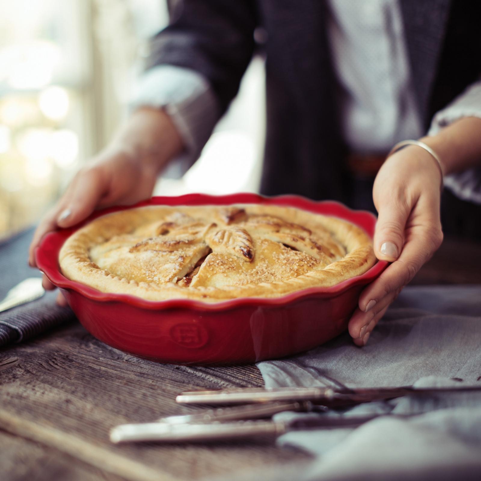 Although pie is an American phenomenon, it was a Frenchman, Jacques Henry of the Emile Henry family, who was granted a U.S. Patent for his version of the American pie shape. His design has given the traditional American dessert a uniquely rural, French perspective for over 100 years. This Emile Henry design features gracefully scalloped edges that produce sweet and savory pies designed to cook evenly without drying out the dough.