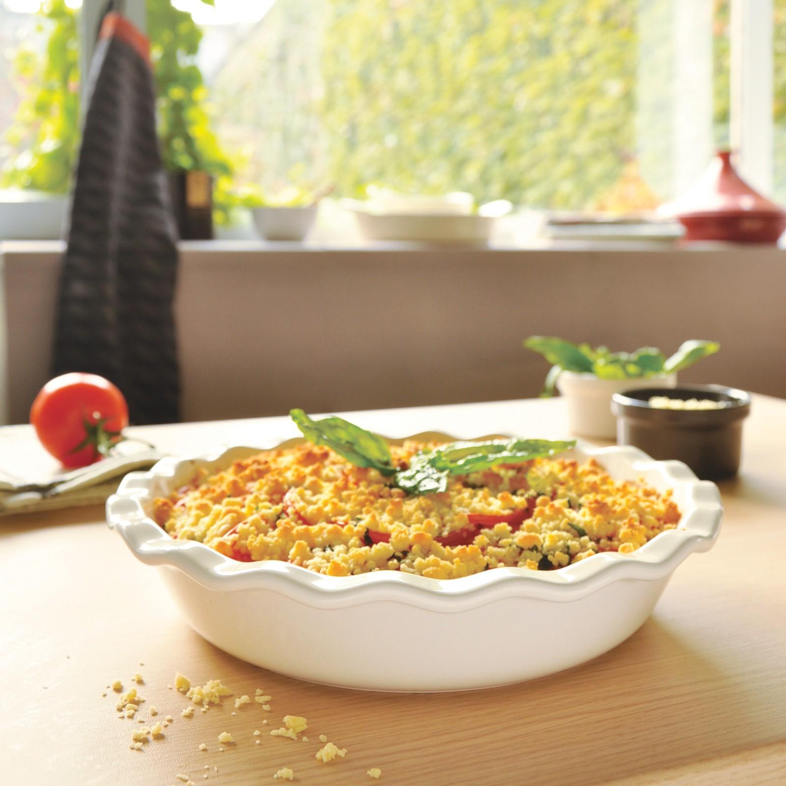 Although pie is an American phenomenon, it was a Frenchman, Jacques Henry of the Emile Henry family, who was granted a U.S. Patent for his version of the American pie shape. His design has given the traditional American dessert a uniquely rural, French perspective for over 100 years. This Emile Henry design features gracefully scalloped edges that produce sweet and savory pies designed to cook evenly without drying out the dough.