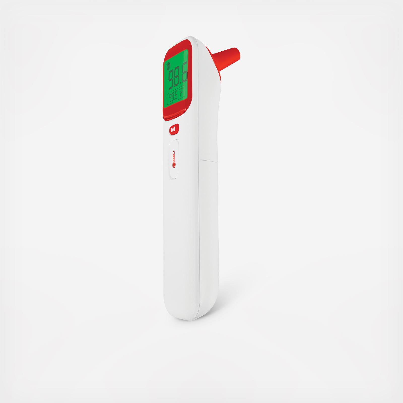 The Ear and Forehead Thermometer provides fast and accurate readings that the whole family can depending on. The visual and audible fever alarm will instantly alert you to both low and high fevers with a color-coded backlit display. Use the non-contact infrared technology to measure in forehead mode, or remove the magnetic probe cover and this smart thermometer will automatically switch into ear mode.