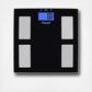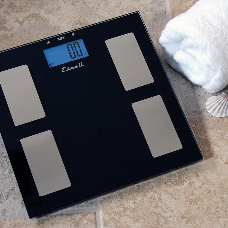 The black tempered glass platform accentuated with stainless steel foot placers give this bathroom scale a modern look which will provide style and sophistication to any bathroom. The scale provides weight, body fat, body water and muscle mass data through the instant-on feature; this feature will provide the user with immediate info when positioned on the scale. Weight capacity 400 lbs. 2x CR2032 batteries included. Warning: Do not use this product if you have a pacemaker or other internal electronic device.