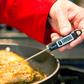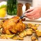 The Escali Digital Gourmet Thermometer has a silky smooth comfort grip handle, a stainless steel step-down probe and stainless steel sheath & pocket clip with target cooking temperatures. The temperature range is 49 to 392 degrees F.