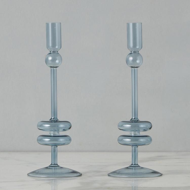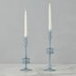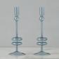 Elevate your home decor with a pair of Glass Candlesticks. These expertly crafted taper candle holders add a touch of timeless elegance to any room. They are perfect for adding a pop of color to your dinner party or creating a statement throughout your home. Mix and match the sizes and colors to create a memorable tablescape. This is a pair of 2 medium candlesticks. These candlesticks pair perfectly with our Twisted Taper Candles. Hand wash only. Never use sharp objects to remove hardened wax drips.
