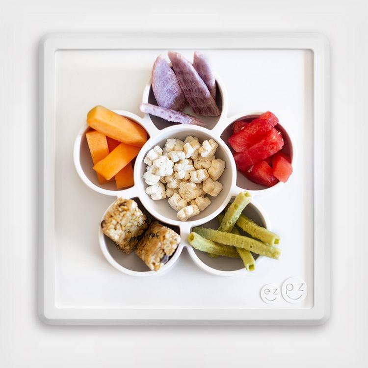 The Mini Play Mat is an all-in-one mat + flower compartments that assists with painting, sorting and other crafts. It suctions directly to any flat surface, making it difficult for "crafting" hands to tip over their paints, glitter and beads.