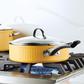 Here's a modern, trustworthy saute pan that marries performance and style. Farberware Style Nonstick Cookware is great for everyday meals, weekend dinner parties, and everything in between. Made with DiamondMax™ Nonstick, Style provides easy release and convenient cleanup, and the fast-heating construction features a unique, contoured exterior that's oven safe up to 500°F. The tempered lid allows you to monitor the cooking process, and the double riveted handles provide steady control as you carry from stove to oven to table.