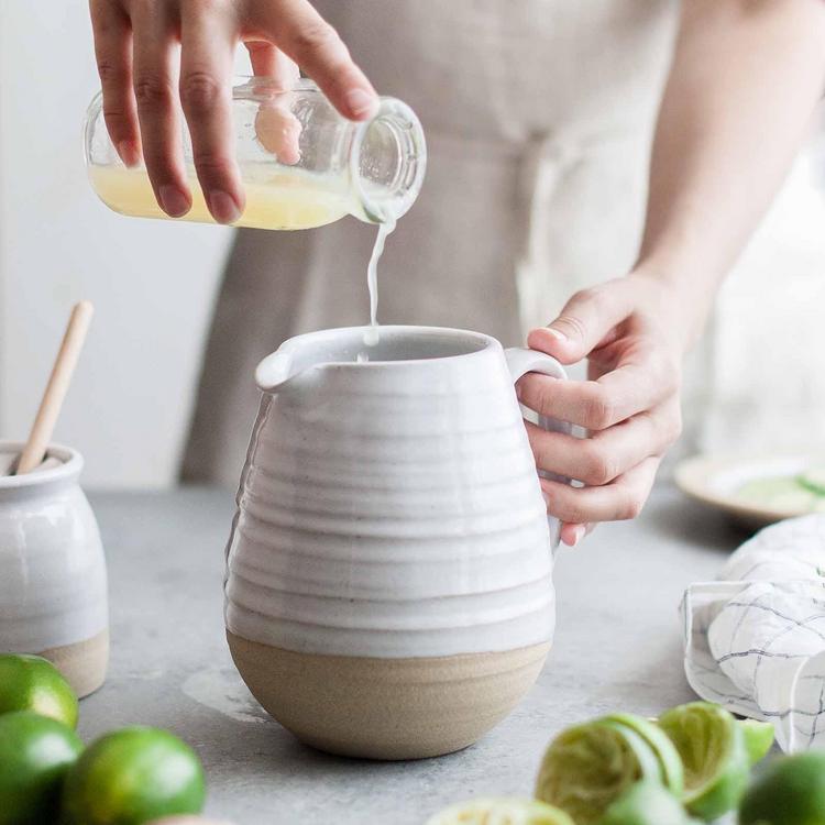 As one of our original Farmhouse Pottery pieces, the Farmers Pitcher holds a special place in our hearts. Handcrafted with care, this timeless pitcher is a staple in any kitchen. Its hand-formed spout and sturdy handle make it perfect for serving everything from lemonade to cream at the breakfast table. Available in three sizes, it’s as beautiful filled with fresh flowers as it is for pouring drinks. This pitcher blends function and charm, making it a piece you'll reach for again and again, just like the day it first came off the wheel.